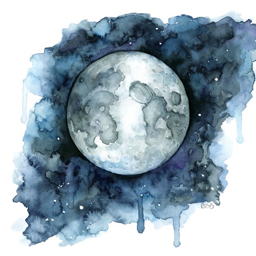 Watercolor Painting Moon Painting Moon Print Moon Phase Etsy